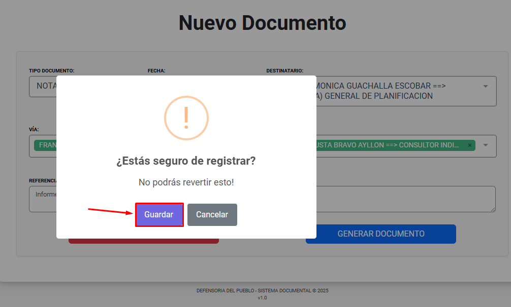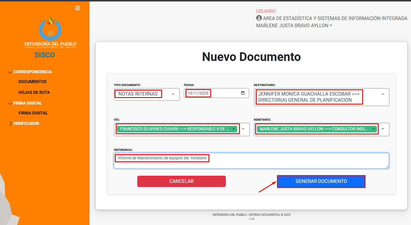 Luego clic en GENERAR DOCUMENTO