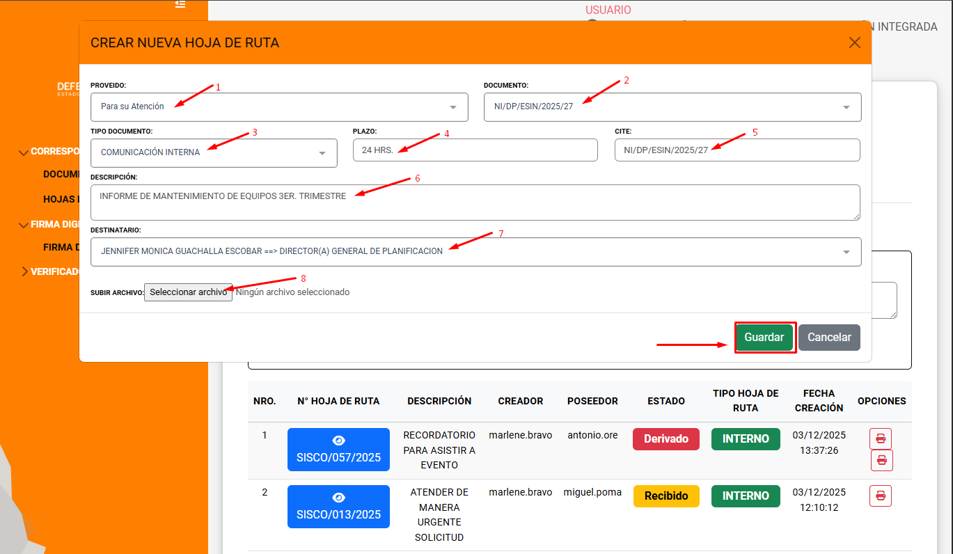 Destinatario: Usuario al que va dirigido el documento.