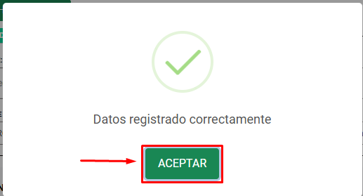 El Sistema creara el documento y mostrara un mensaje de confirmación, hacer clic en ACEPTAR.